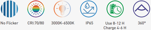 • Énergie solaire: Utilise des panneaux solaires pour la charge, ce qui en fait une solution d'éclairage écologique et durable.